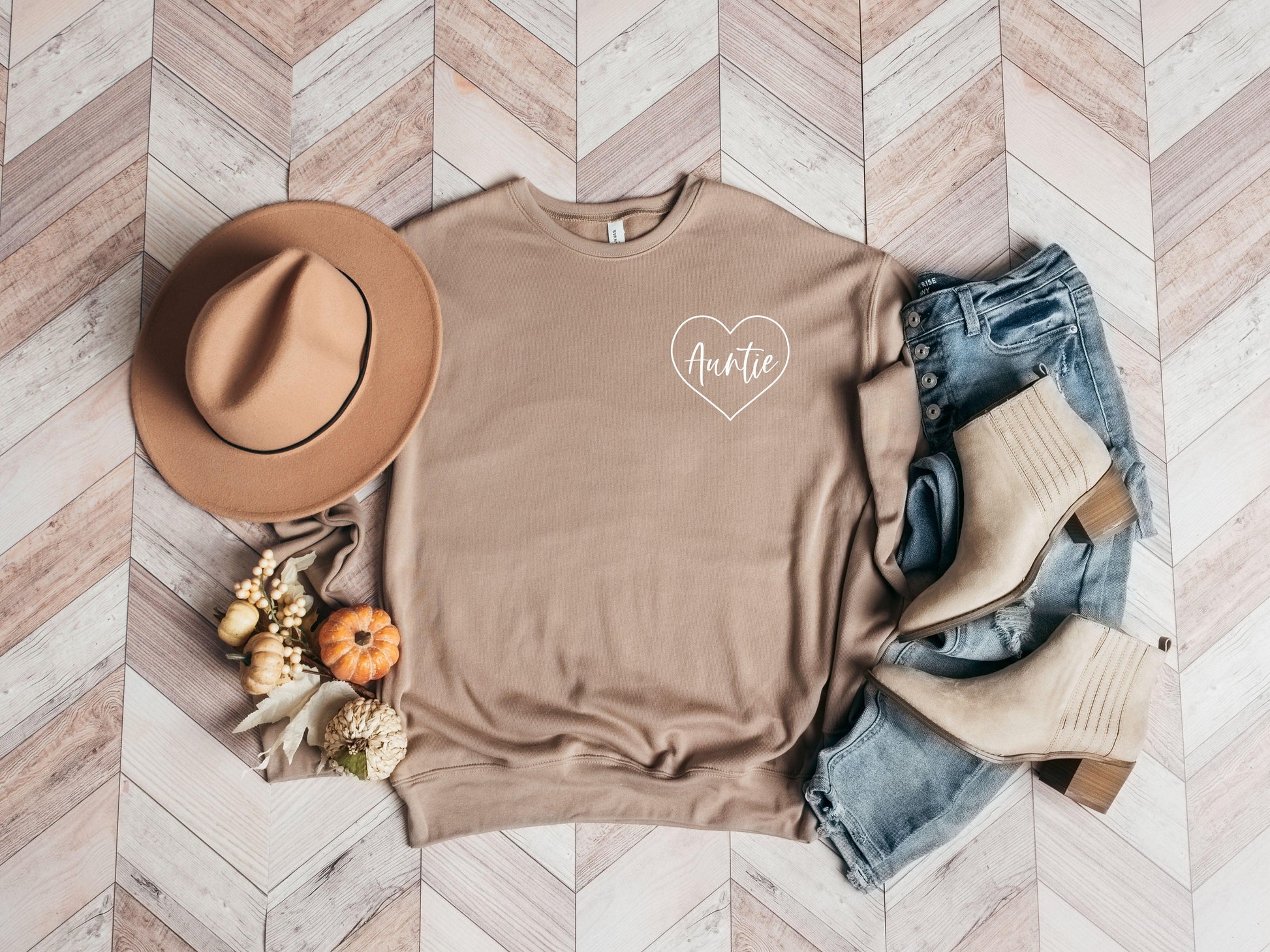 Auntie Heart Around Drop Shoulder Sponge Fleece Crewneck Sweatshirt