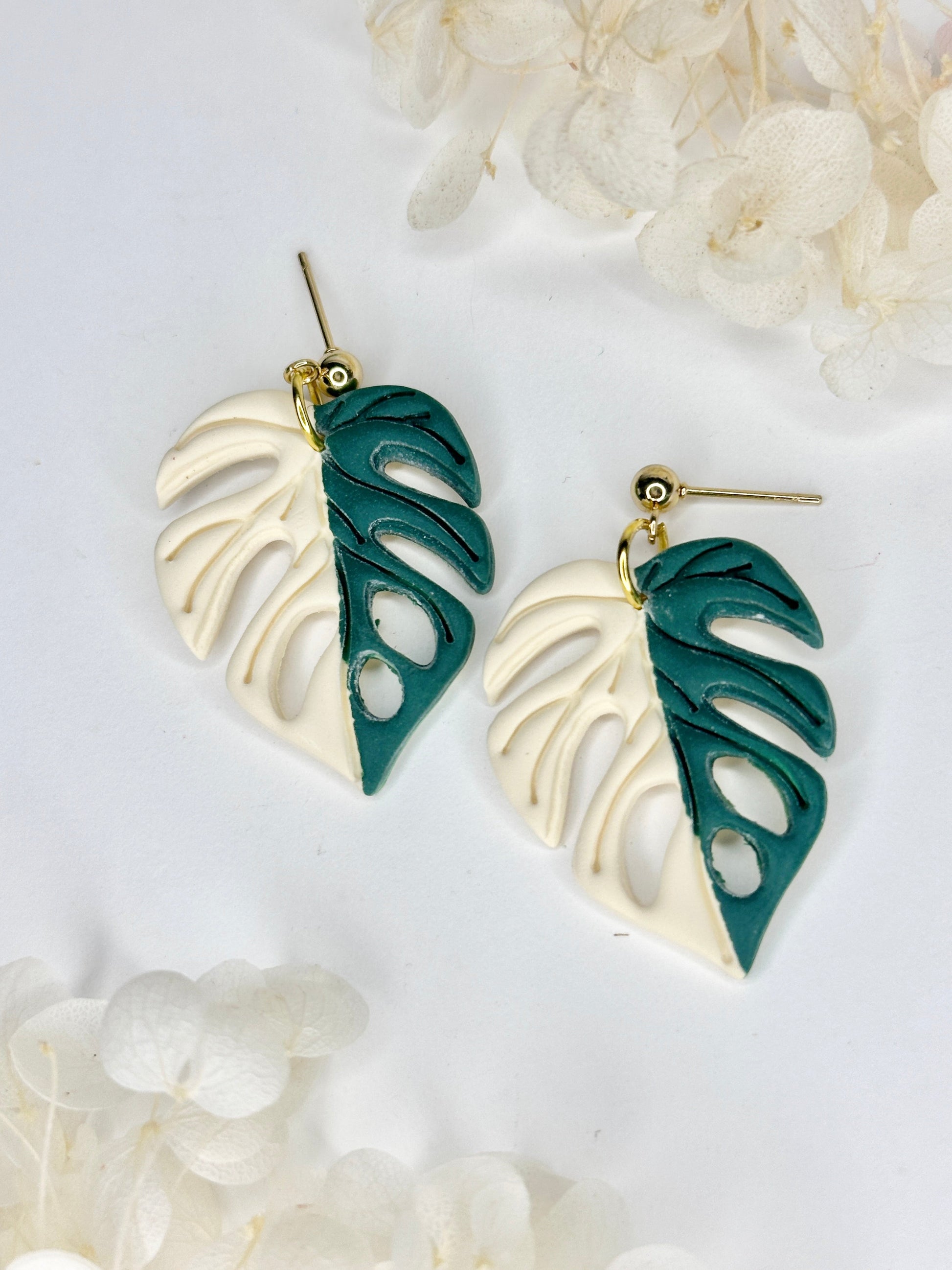 Inspired by the rare half-moon Monstera, these statement earrings celebrate perfect asymmetry with creamy white and deep jade marbling.