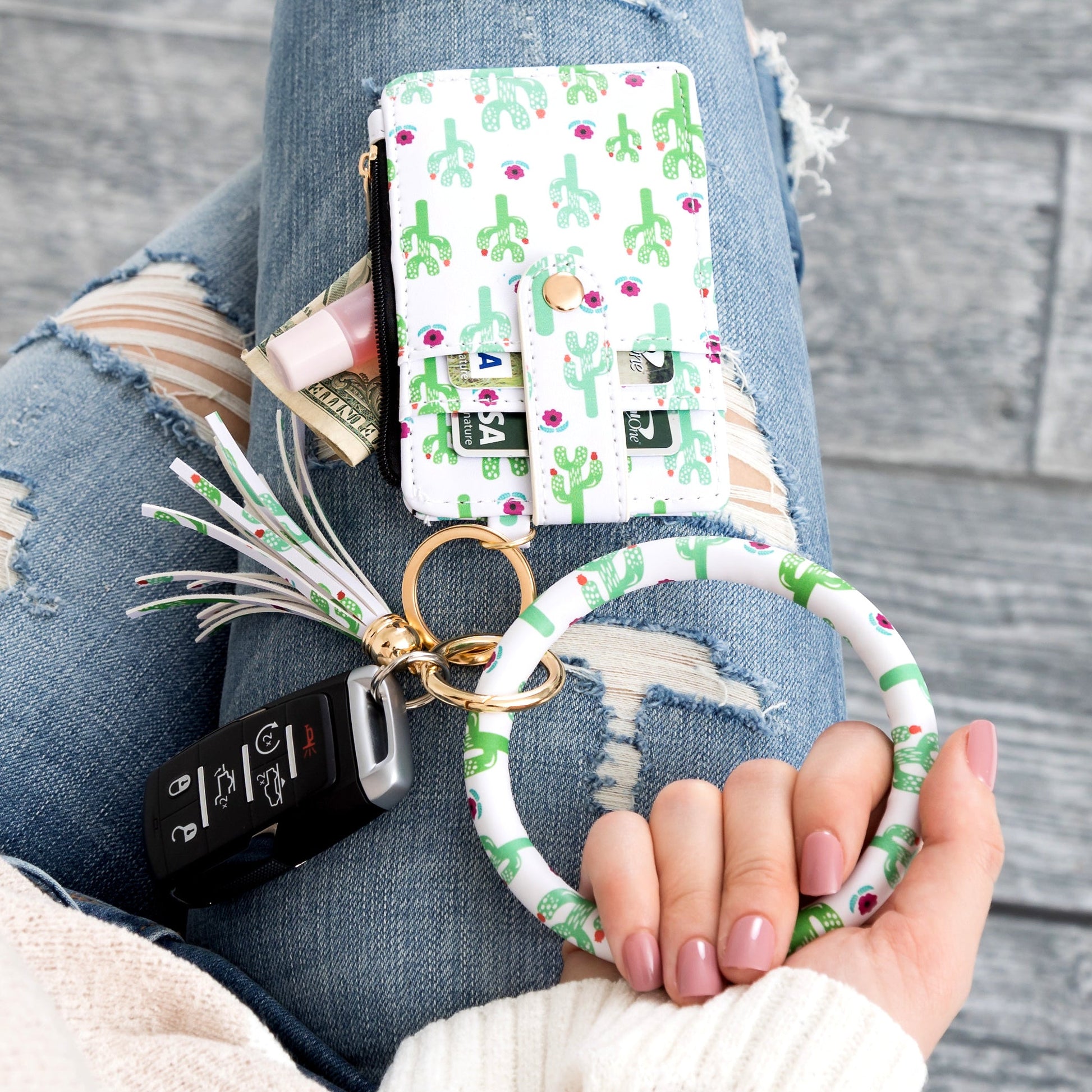 Say Hello to our Key Ring ID Wallet Zip Bracelets! A hidden zipper coin pocket hide your tiniest treasures, while secure pockets for cash and cards on one side and an ID slot on the other give you the ultimate in hands free! You'll never go out the same way again!