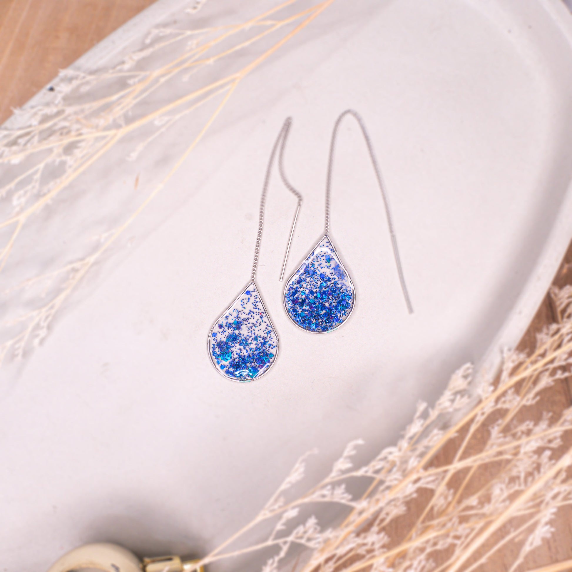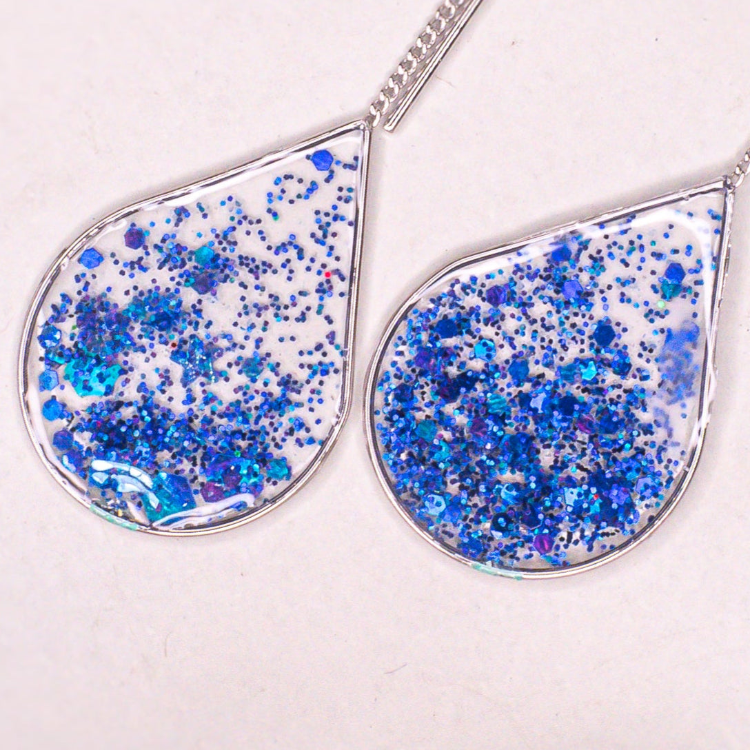 • Resin mixed with varied sizes of navy blue glitter for a festive, sparkling finish