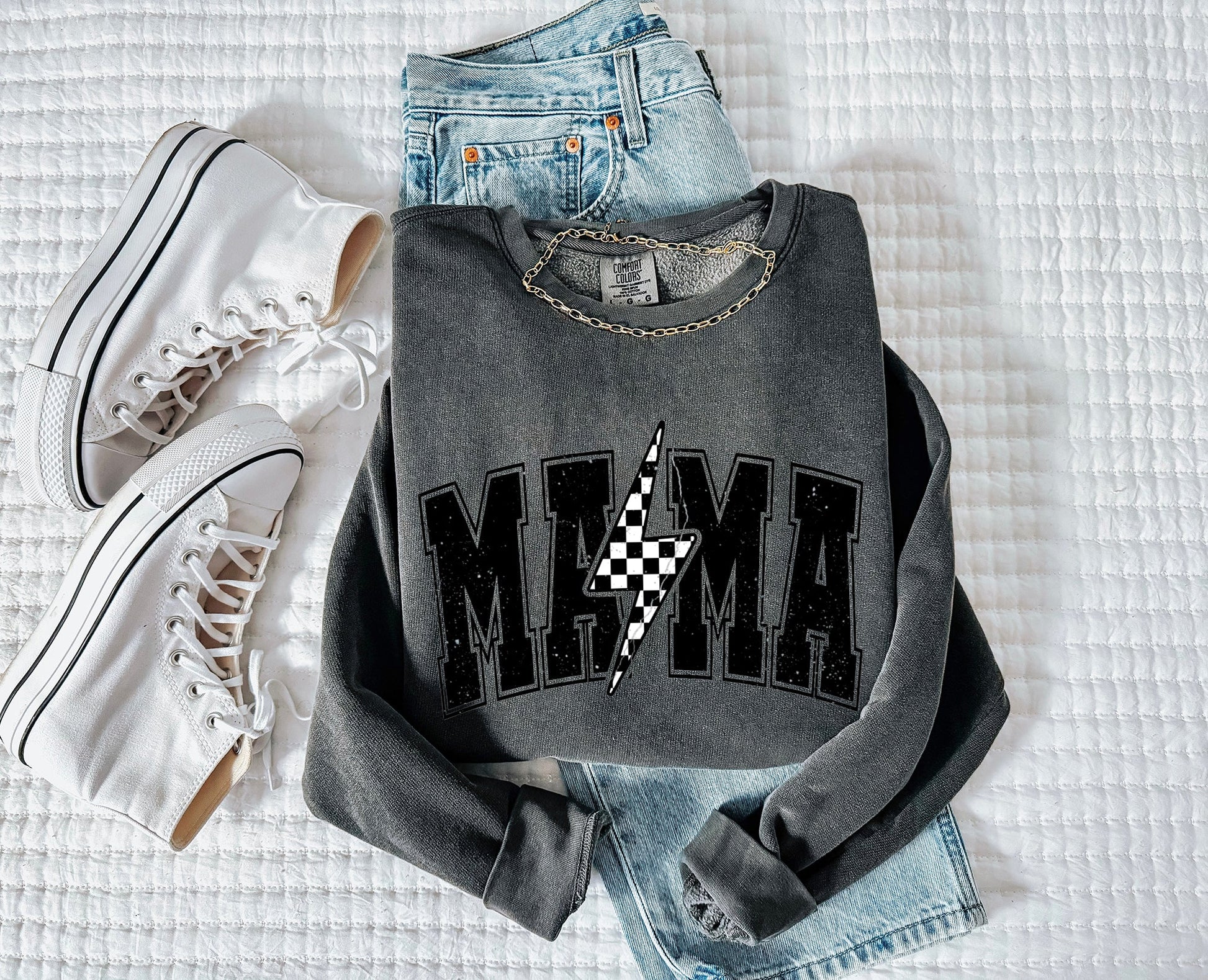 Mama Lightning Garment Dyed Comfort Colors Sweatshirt (Condensed)