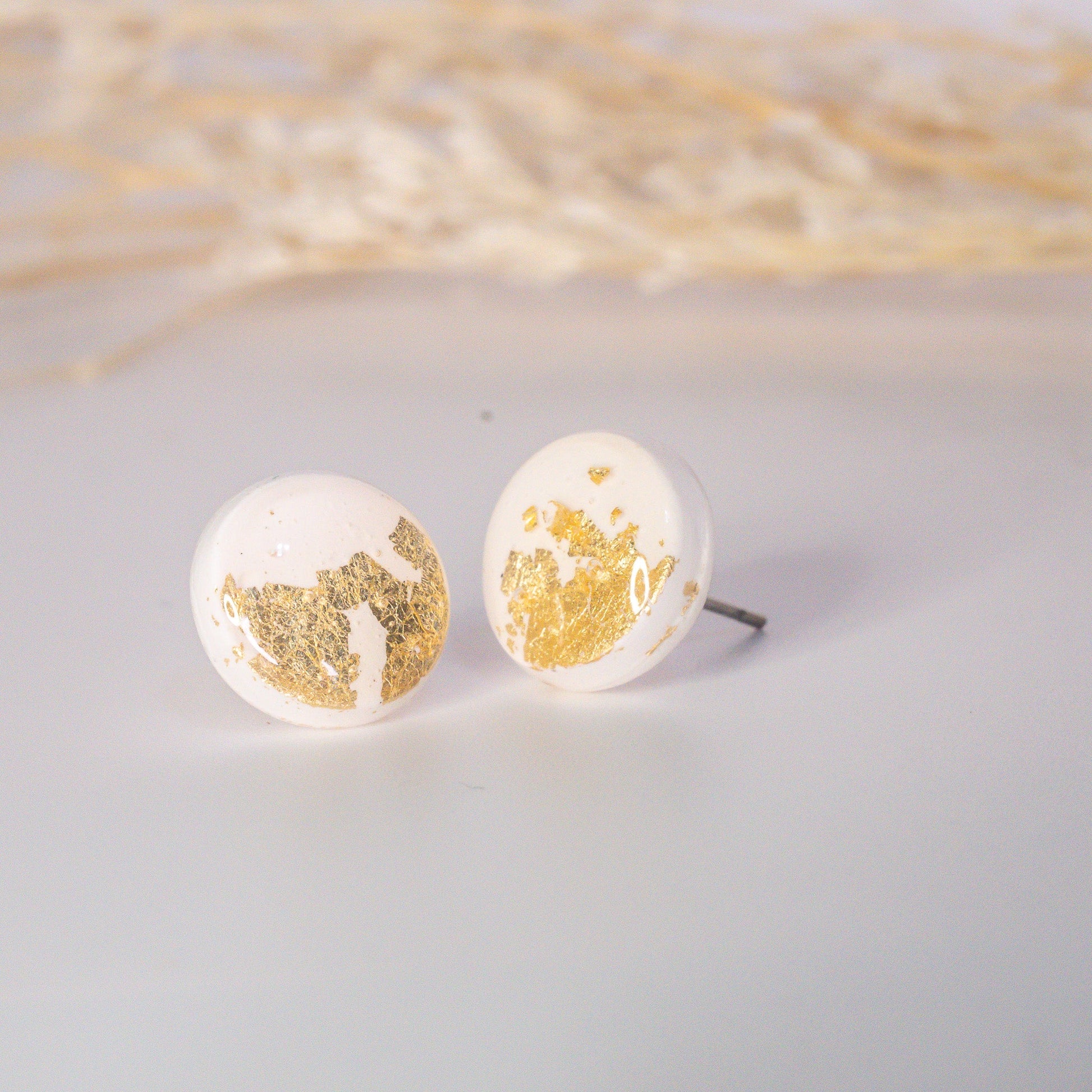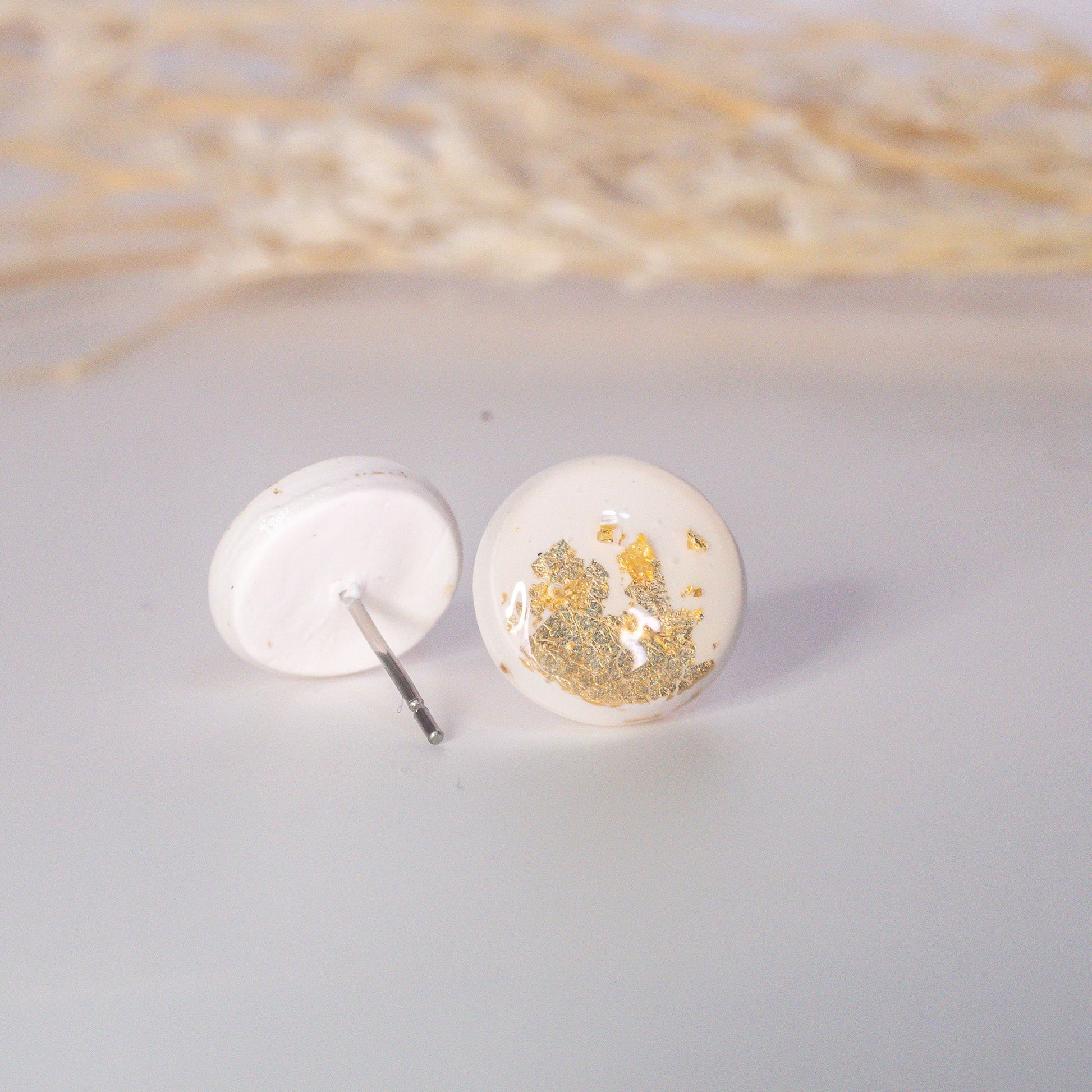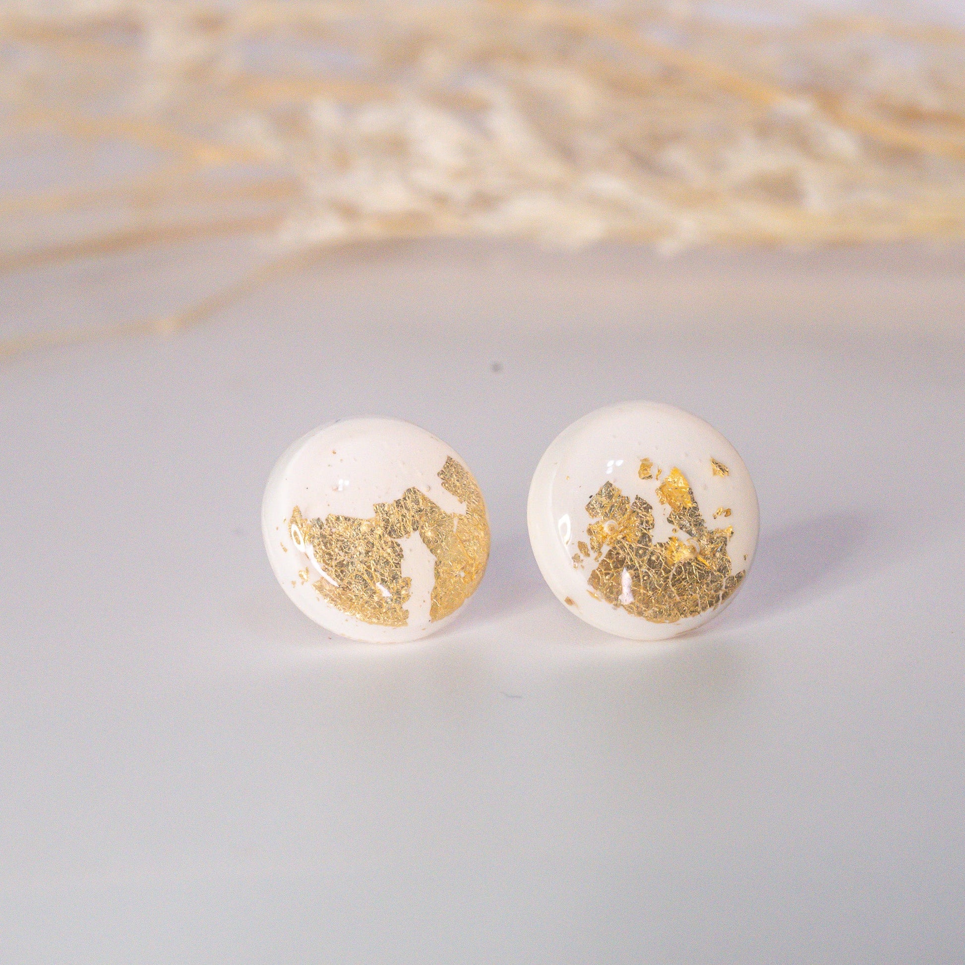 Elegant Studs – White & Gold Flakes