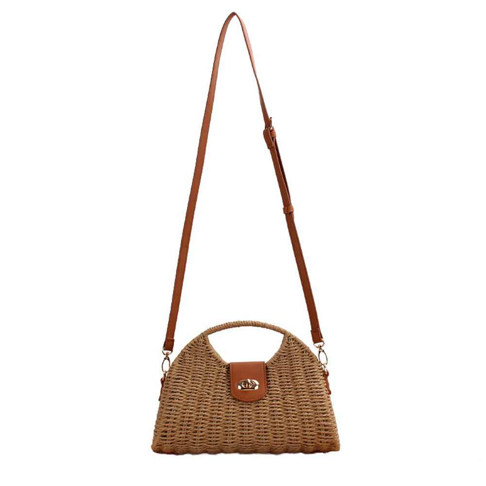 Stella Woven Straw Top Handle Crossbody Bag