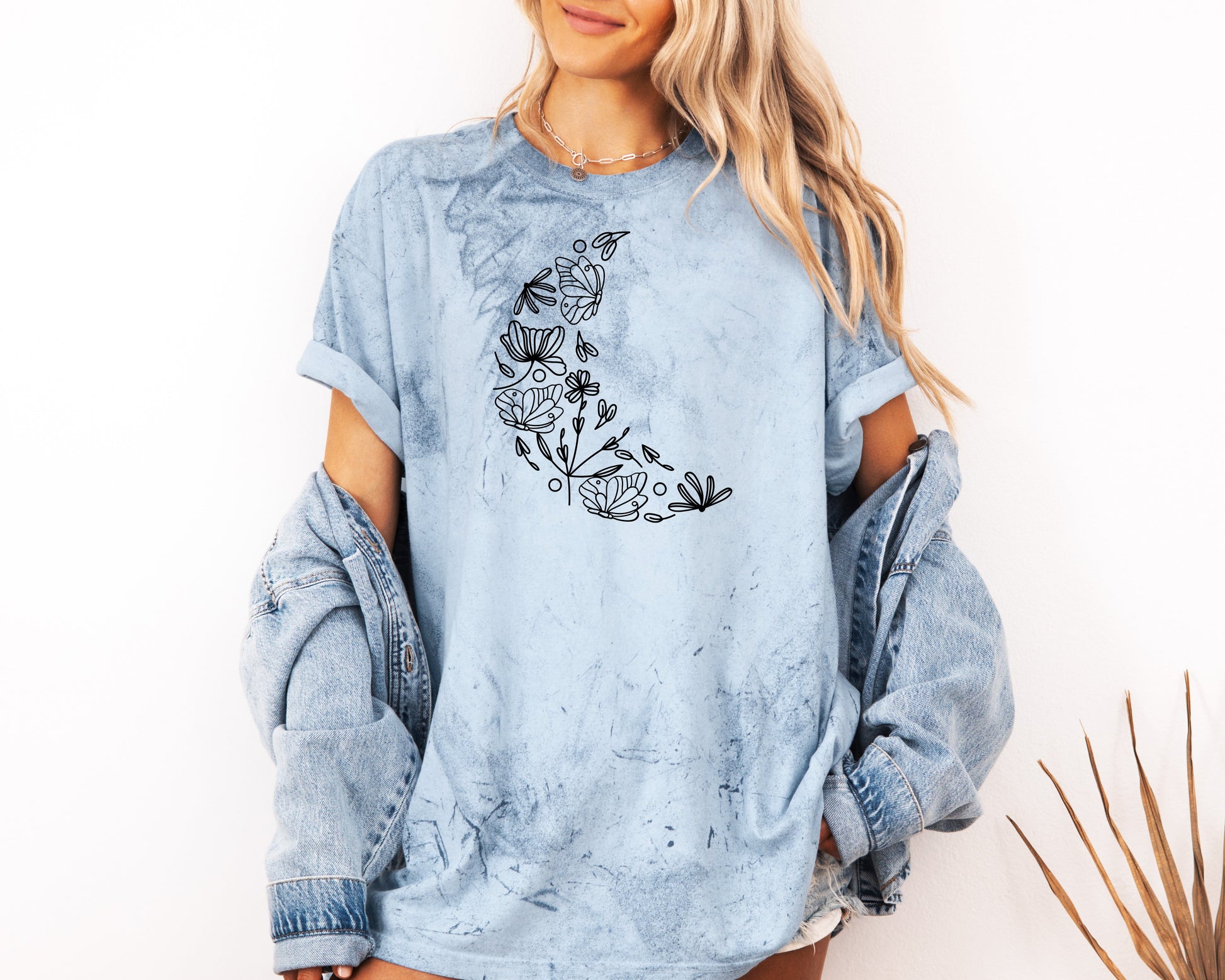 The Moon made of Flowers Nature botanical Garment Dyed T Shirt