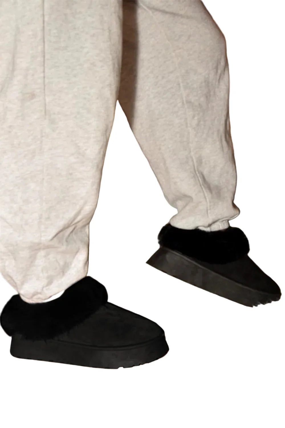 Their chic platform design elevates your style, allowing you to dance effortlessly from casual outings to romantic evenings. Slip them on with ease, and let the luxurious feel of suede and fluff wrap you in a cozy embrace. Perfectly versatile, these booties are your new love affair with fashion.
