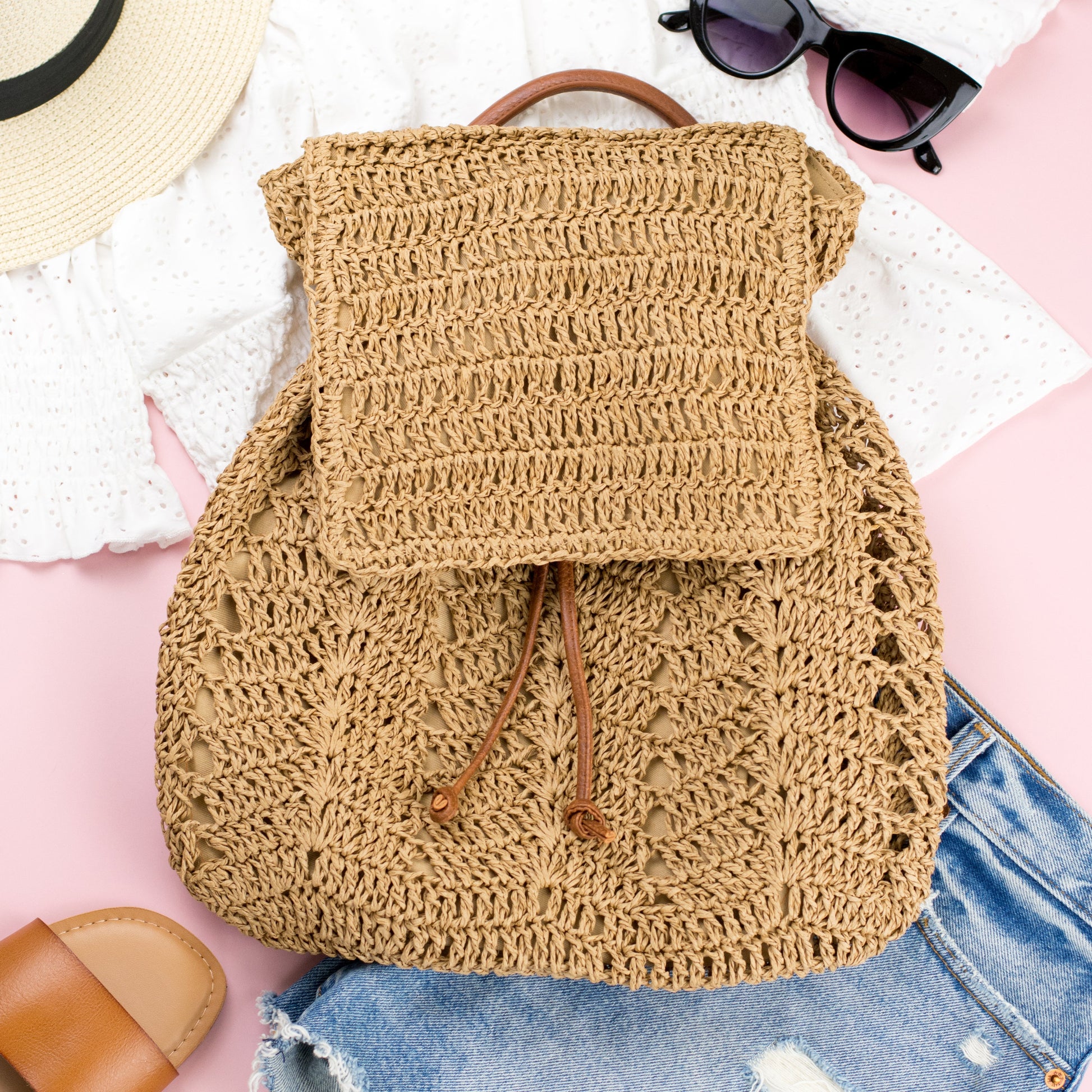 Woven Straw Backpack